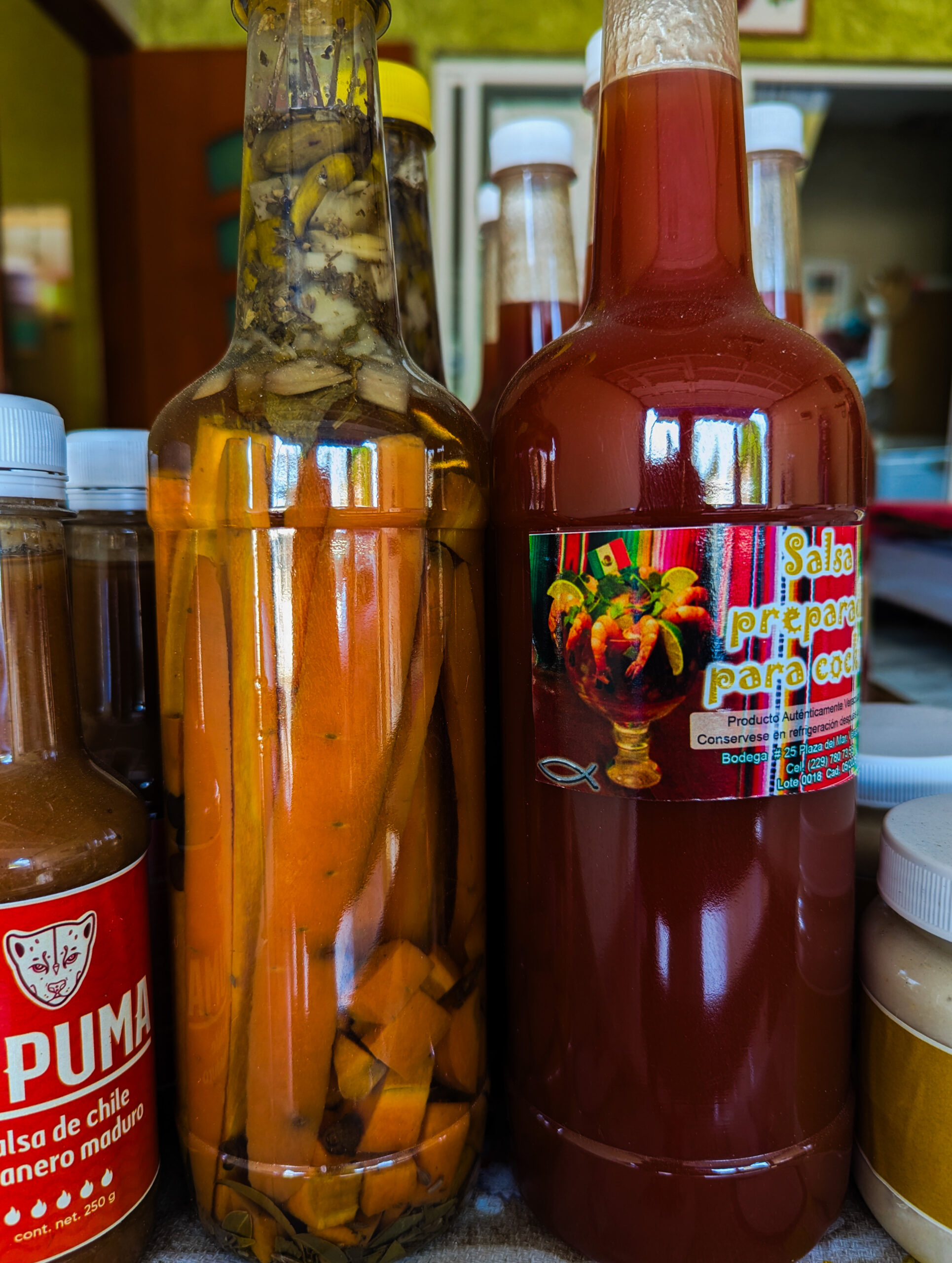 Tiene ajo con mantequilla, ajo con pimienta, catsup preparada y la llamada de la “bruja”, también se vende muy bien la de habanero con piña y chipotle dulce con piloncillo.