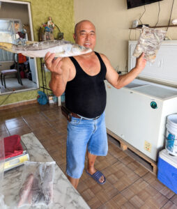 —“Mi papá y yo salimos. No había habido pesca. Nos fuimos con la esperanza de sacar algo. Pero se vino una tempestad. No veíamos ni a tres metros. Los rayos, el agua, los truenos… Él con el motorcito, yo sacando agua. Nos hablábamos a cada rato por si pasaba algo. Solo sacamos nueve, pero grandes. Esa vez fue puro coraje y fe.”