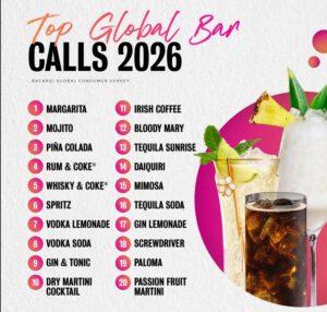 Aunque los cocteles ligeros ganan terreno, México continúa siendo un país profundamente amante del ron. Y Bacardí lo confirma: tres de los seis cócteles más pedidos en el país llevan este destilado —Piña Colada, Mojito y Daiquirí—, demostrando su versatilidad para adaptarse a paladares modernos.