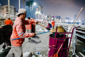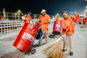 —Cuando termina un evento masivo en el Malecón. Miles de personas se van al mismo tiempo y el piso queda cubierto de botellas, envases, restos de comida. Entramos por cuadrillas: unos barren, otros embolsan, otros cargan. La idea es que al amanecer todo esté limpio, que la gente vea la ciudad ordenada.